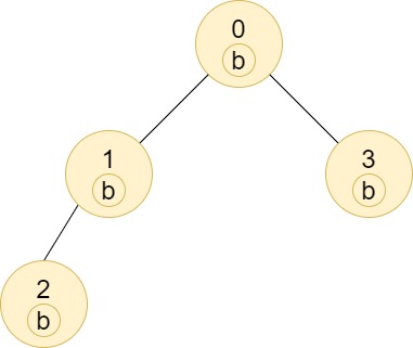 Node 1 has a label 'b'. The sub-tree of node 1 contains nodes 1,4 and 5, as nodes 4 and 5 have different labels than node 1, the answer is just 1 (the node itself).Input: n = 4, edges = [[0,1],[1,2],[0,3]], labels = "bbbb"