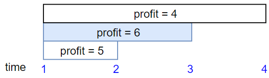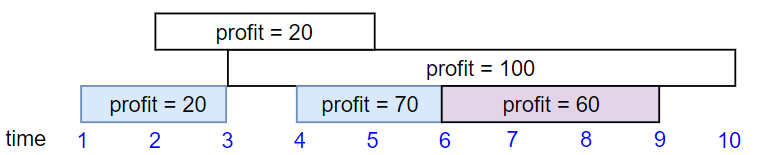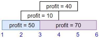 Profit obtained 150 = 20 + 70 + 60.Input: startTime = [1,1,1], endTime = [2,3,4], profit = [5,6,4]