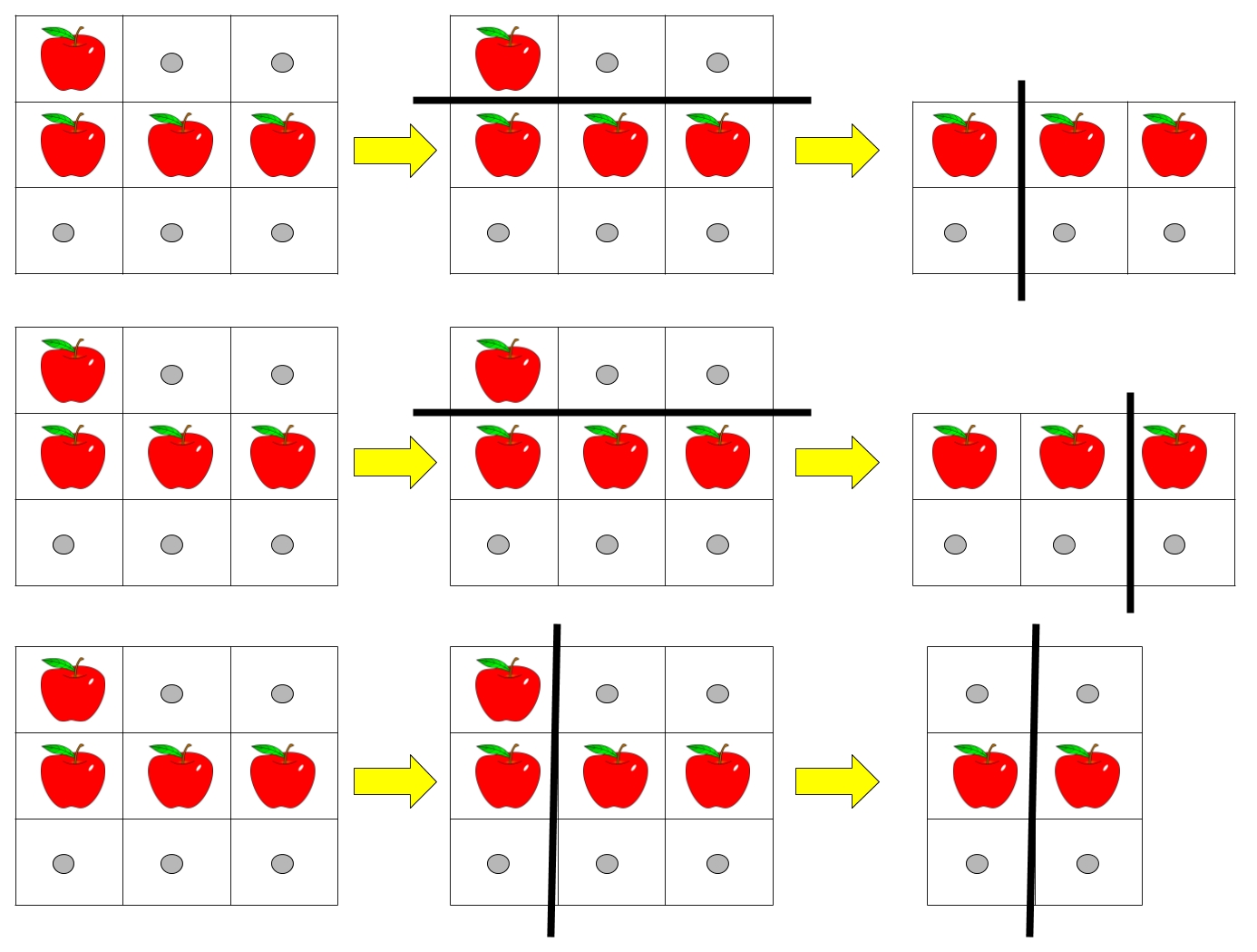 apple[i + 1][j + 1] = apple[i + 1][j] + apple[i][j + 1] - apple[i][j]