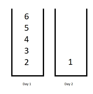 Input: jobDifficulty = [6,5,4,3,2,1], d = 2