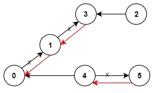 Explanation: Change the direction of edges show in red such that each node can reach the node 0 (capital).