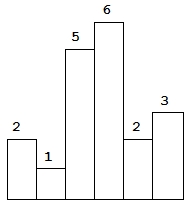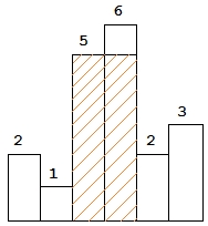 Above is a histogram where width of each bar is 1, given height = [2,1,5,6,2,3].