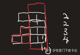 由01组成的矩阵,问其中有多少个由1组成的长方形。矩阵 + count => DP。遍历到(i, j), 如下图